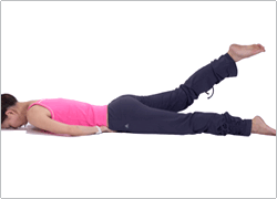 1. 雙手握拳置於鼠蹊部,面部朝下平躺於地面